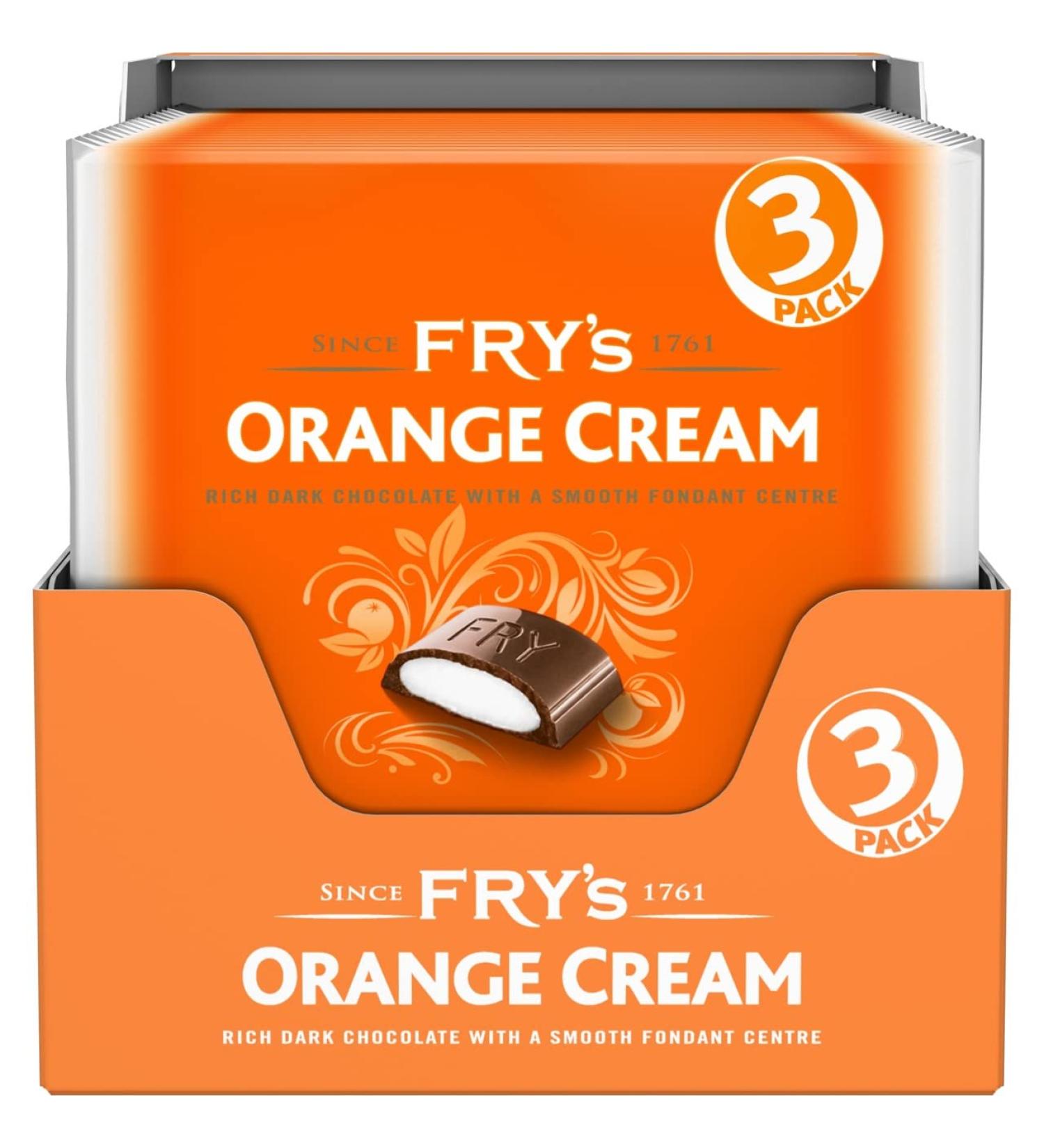 Indulge in a classic combination with Fry’s Orange Cream. Each bar features smooth, rich dark chocolate filled with a zesty orange-flavoured fondant centre, delivering a perfectly balanced blend of citrus freshness and deep cocoa flavour. With three bars in the pack, it’s ideal for sharing or savouring slowly.